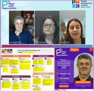 Tive a honra de ministrar o webinar “Papo com Especialista”, promovido pelo PMI Bahia, com o tema KMCanvas – o Canvas da Gestão do Conhecimento.